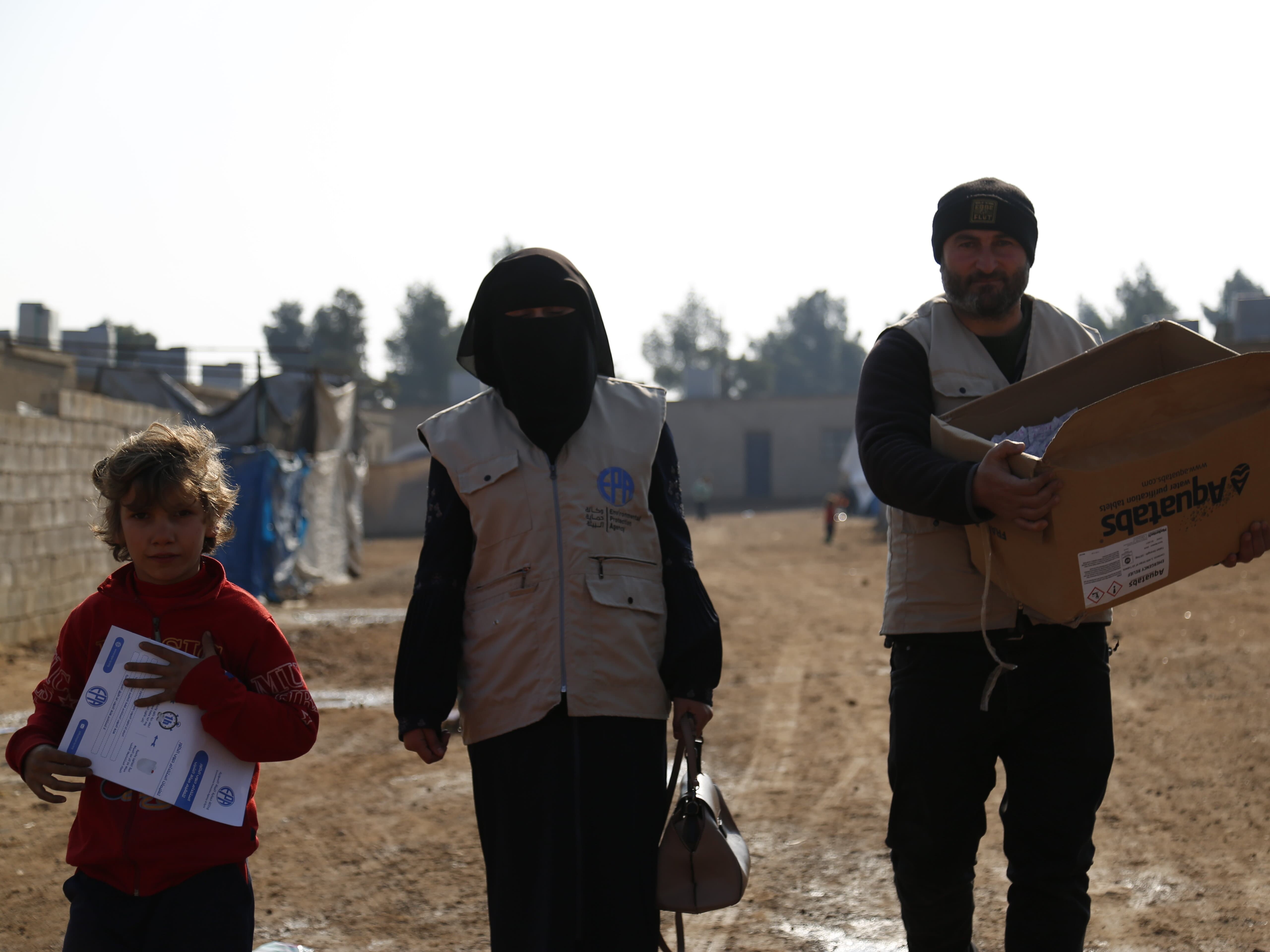 In the framework of enhancing cooperation with local communities and promoting community participation, EPA implemented an awareness campaign to prevent cholera in camps in the Qabasin area, focusing on the role of the local community in all its segments in achieving an effective response to limit the spread of cholera in the northern Syrian regions.